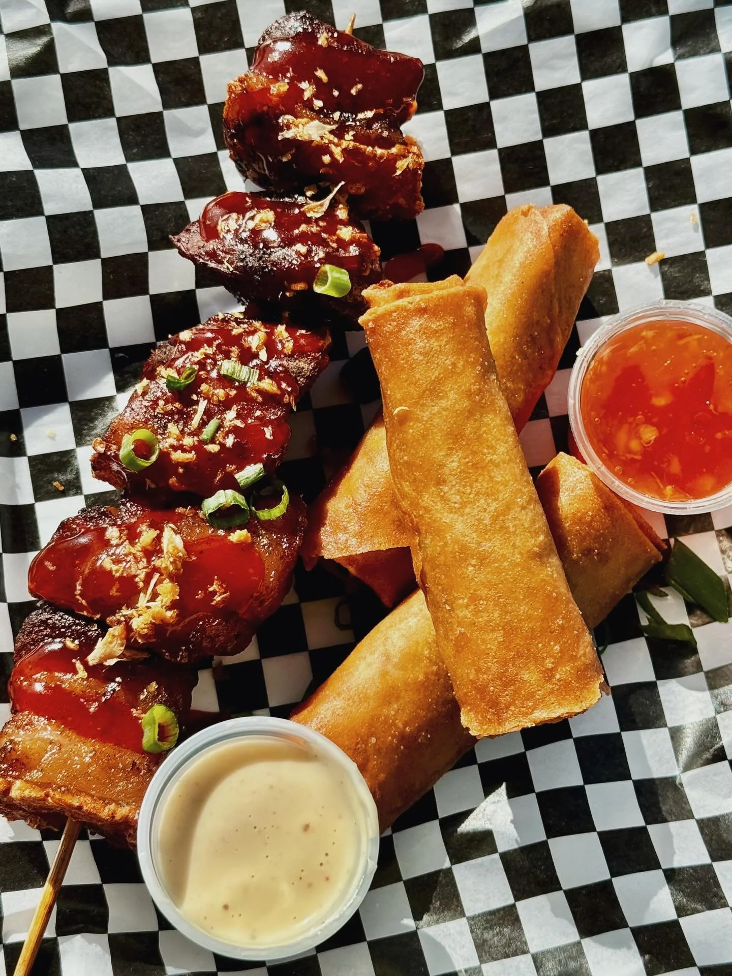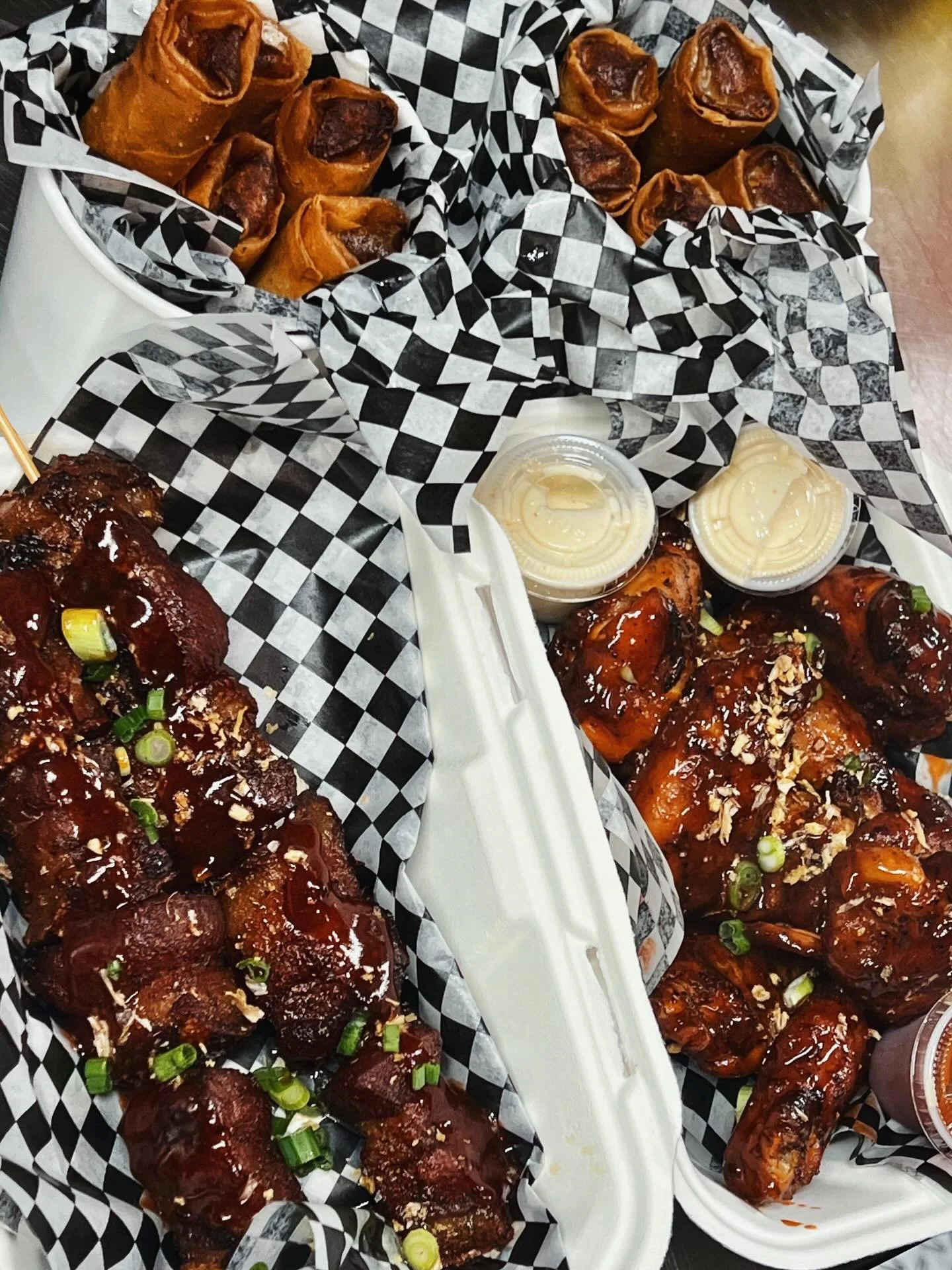 “The service was great and the food was phenomenal! We had the brisket lumpia, bbq wings, and brisket fries. Some of the best wings around and the lumpia was crispy delicious and the sauce was amazing.”
